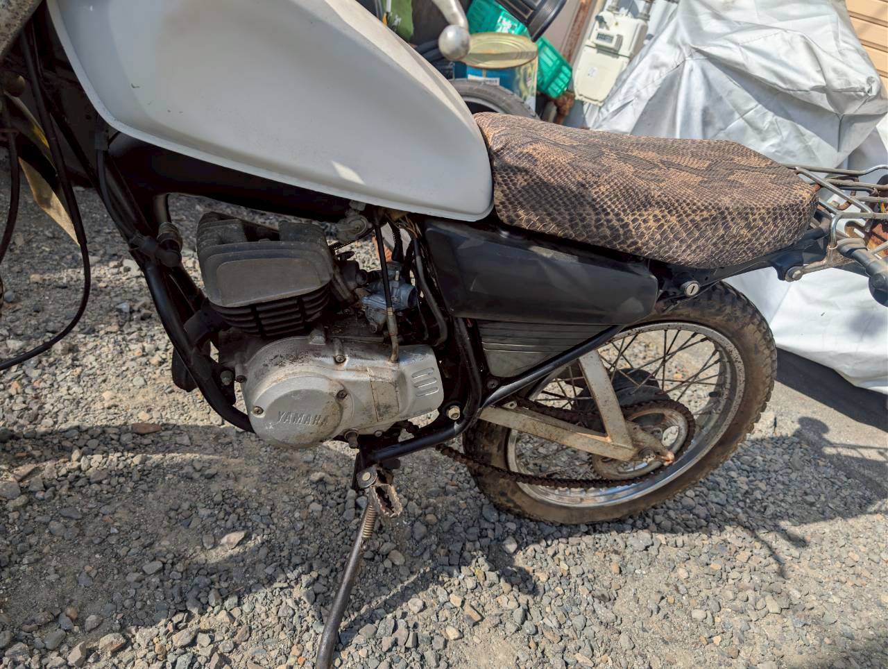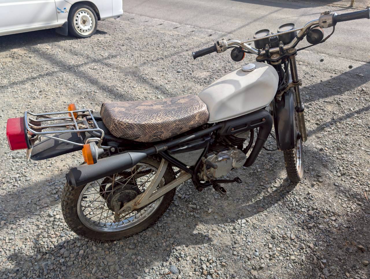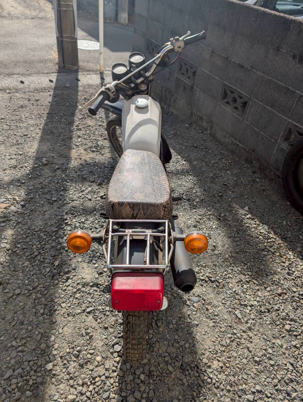 外装:全体的にサビ、塗装剥げ、傷があります。シートはヘビ柄になっています。